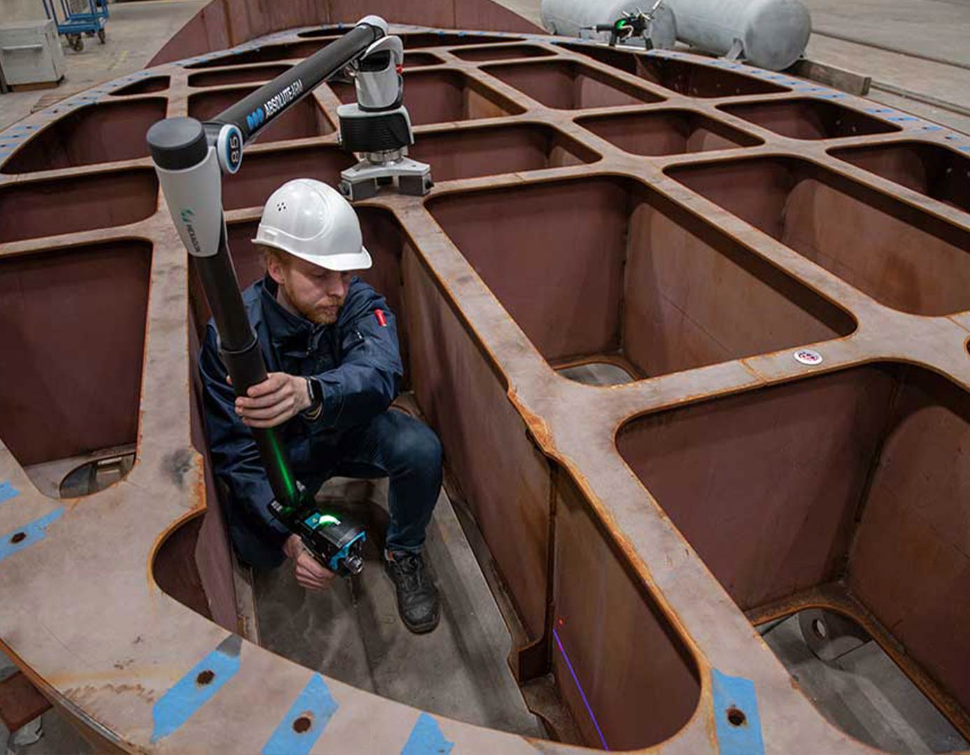 Hexagon Portable CMM measuring arm combining precision contact probing and laser scanning for accurate dimensional inspection, part measurement, and quality control.
